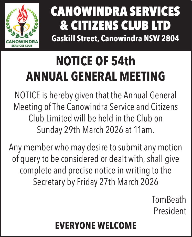 The Canowindra Junior Pythons are getting ready for an exciting 2026 Season!The Club will hold a Come and Try Day this Sunday, 1 March at the Rugby Club House / Oval. It will be a fun filled day, jam … Read More...