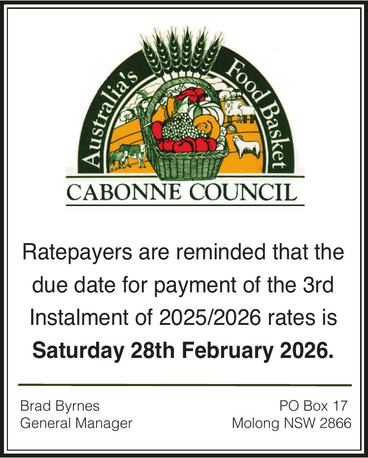 Cabonne Seniors Expo: Cabonne Community Centre, Molong, doors open at 10am. Registrations essential for catering by Friday, 13 March by calling Cabonne Home Support on 6344 1199 or chs@cabonne.nsw.gov.au. |