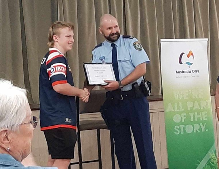 Young Citizen of the Year, Darius Carpenter receiving his award from Senior Constable Michael Rodham.