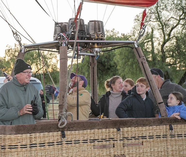 A full basket of eager passengers ready for the morning flight with pilot Anton Kerr of Balloon Joy Flights.