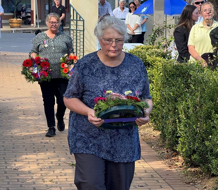 A large crowd gathered in Memorial Park to Commemorate Anzac Day and lay wreaths at the Cenotaph.