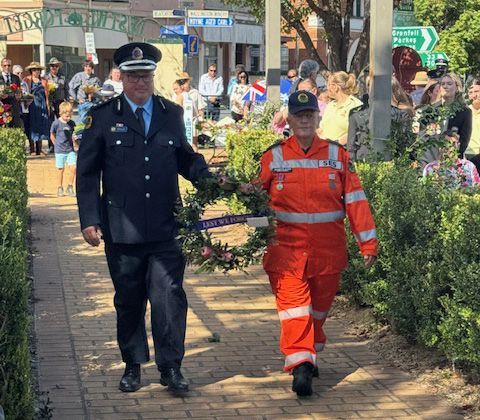 The local SES Branch were among the emergency services who laid a wreath on Anzac Day.
