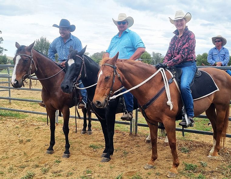 Dylan, Pete and Kath saddled up, about to compete.