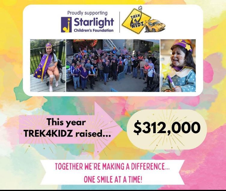 Congratulations to Michelle Fisher for helping raise money for the Starlight Foundation on the 2025 Tre4k4kidz rally.