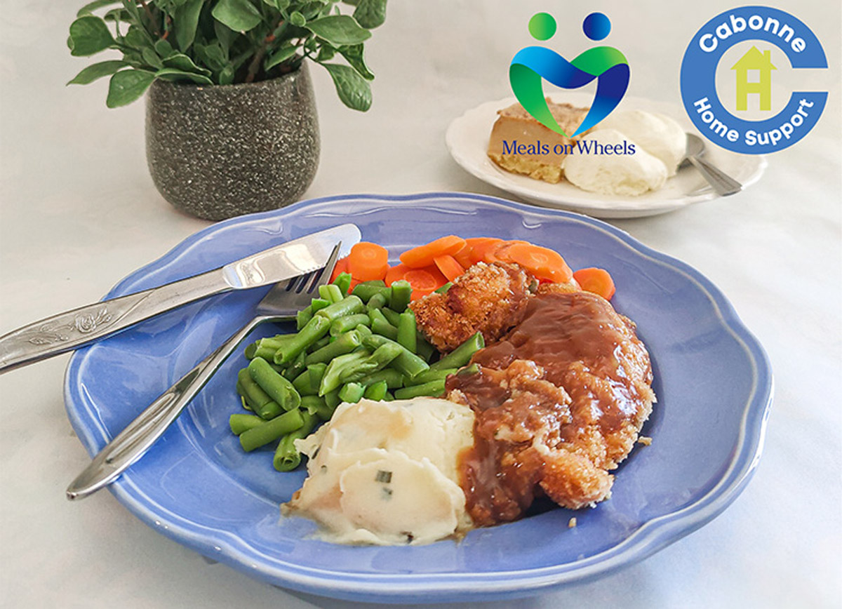 Chicken schnitzel and vegetables is just one of the delicious meal choices provided by the Cabonne Home Supports Melas On Wheels service.