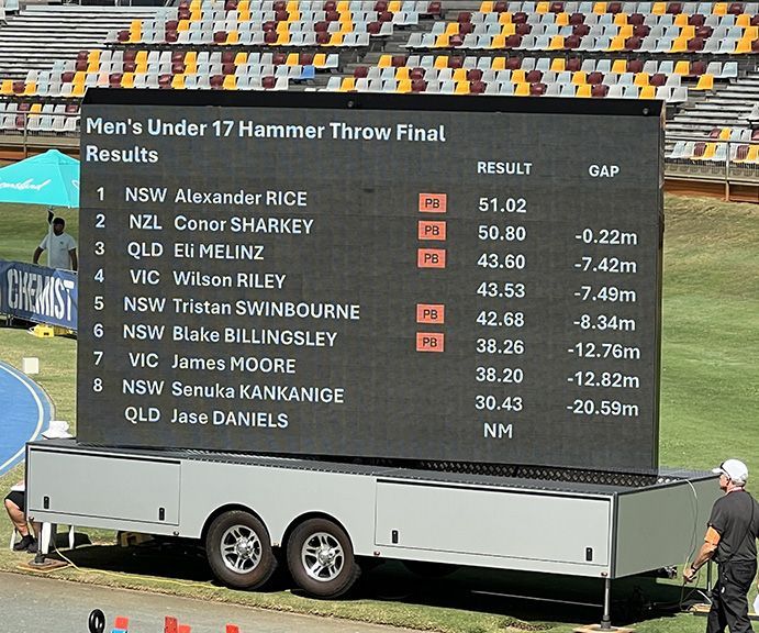 Alexander Rice (15 years), under the expert tutorage of coach Ernie Shankleton, broke through in the u/17s Hammer throw last Wednesday 15 April, by winning the Australian championship at QSAC in Brisbane.