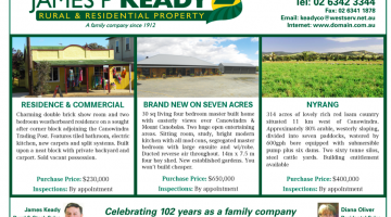 2 B/room Hardiplank home set on large 1657sqm corner block. Established gardens Equipped Well. Sheds and bird Averies Ample room to extend as the family grows. $160,000 Canowindra … [Read more...]