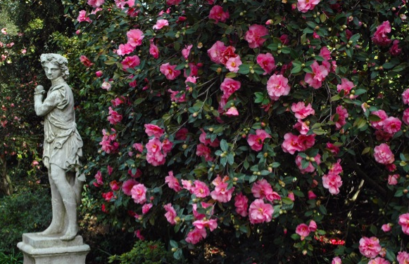 Camellia japonicas prefer part sun to shady spots and have larger, glossy dark green leaves and flower a little later than sasan- quas-from mid winter to spring. There are huge numbers of cultivars available, including: