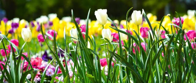 Tulips- queen of the night (dark purple/black); flaming parrot (large ruffled yellow petals with red edges); claudia ( purple with white edges); ile de france ( red); Barcelona (fuchsia purple).