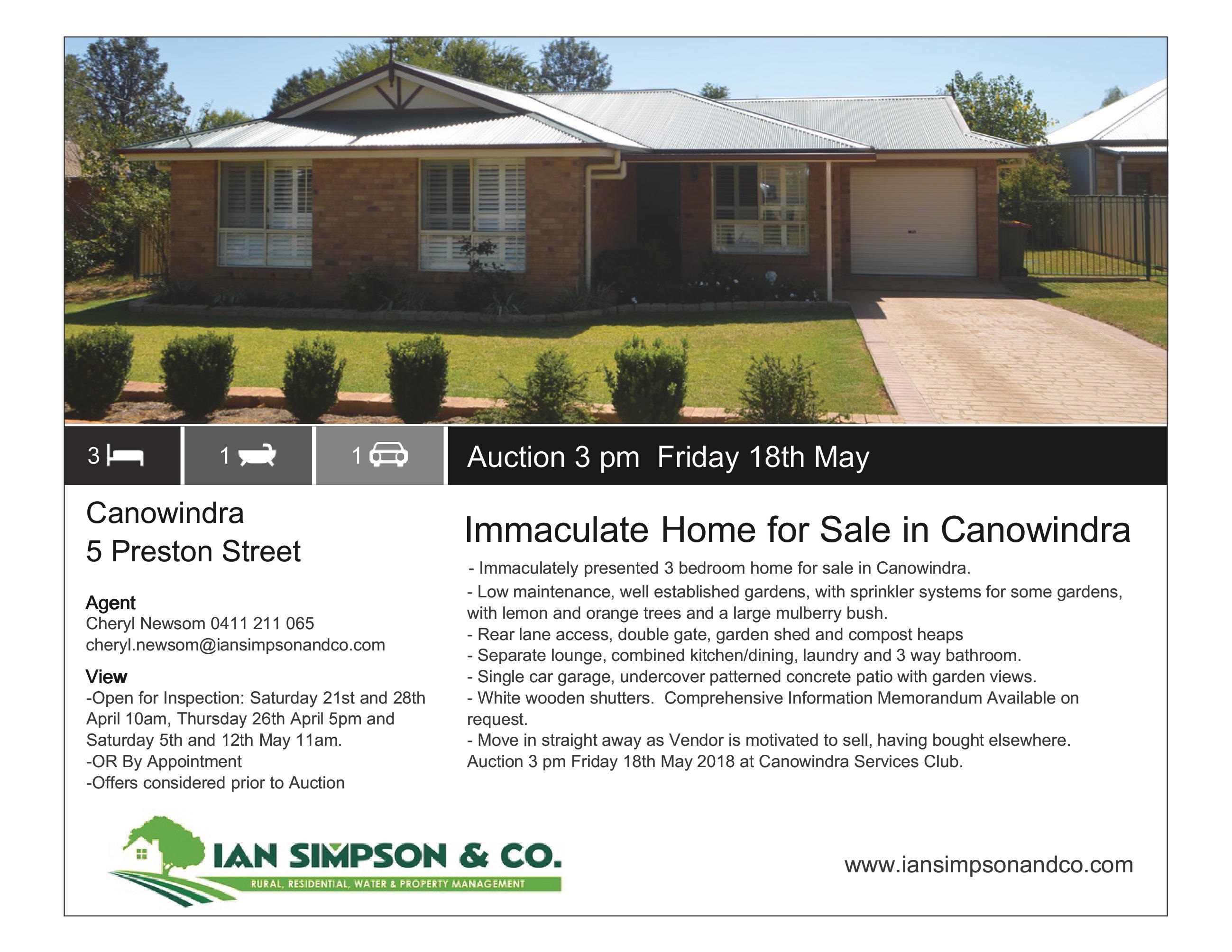 Street Address: 84 Gaskill Street Canowindra NSW 2804
