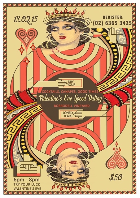 speed-dating-posterAre you single, nimble and ready to mingle? Valentine’s doesn’t have to be all about couples sickeningly swooning over each other with love hearts for eyes, it can also be the perfect time to grab a friend and get your date on! Borrodell Vineyard are hosting an evening of Speed Dating on Valentine’s Eve where they say there will be ‘cocktails, canapes and good times’. The night kicks off at 6pm where you will receive a cocktail upon arrival (for a bit of Dutch courage) a name tag, a question list, a small blank card and instructions from the host. In the spirit of chivalry the ladies will then take a seat at the tables where there are chocolates (possibly for Belgian courage) and a list of questions. Men sit opposite the lady and they have two minutes to ask and answer one question from the list. Incidentally, the questions on the list are created by a scientist from the U.S who apparently guarantees, when they are asked and answered honestly, that the questions will make two strangers fall in love! Once the bell rings the men move to chat to the next lady until everyone has met each other and many cocktails and chocolates have been consumed. Then it’s the men’s turn to take a seat and the ladies hop from table to table. Throughout the night, you can write a message on your blank card to whoever you wish and pop the card in the ‘love box’ where is will then be discretely delivered to the receiver. If any love matches come from the night the happy couple will be welcomed back to Sisters Rock Restaurant within the year and will receive a complimentary bottle of wine with their dinner! Sounds like an evening too good to resist and potentially too hot to handle! If you would like to book call 63653425 or fill out our entry form above for your chance to win two free tickets!