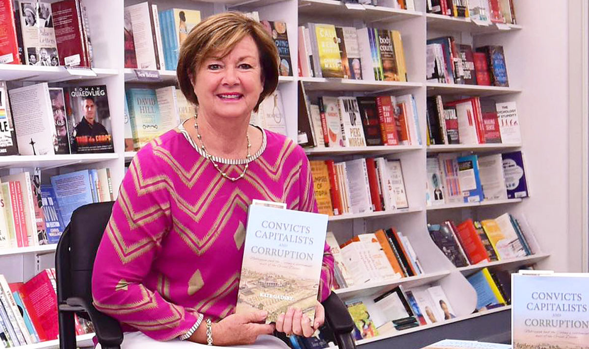 Author Kate Gadsby with her book, Convicts Capitalists and Corruption. Kate welcomes you to meet with her at Orange City Library,18th July.