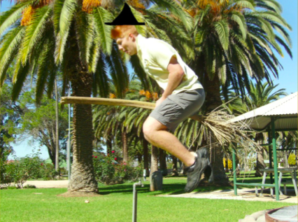 While the Year 11 D&T class visited the park to get ideas for the project, Regan Hughes aka Fred Weasley took time out from his game of quidditch to pose for this photo
