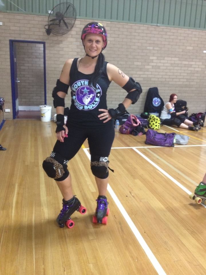 Staci has been training with Orange Roller Derby League since 2011 but due to safety requirements and minimal team numbers, has been unable to compete in a fully-fledged match (called a Bout) until last weekend. Well done Staci!