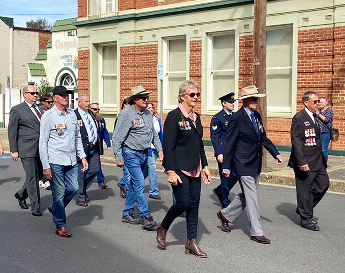 Canowindra RSL Sub-Branch members Nathan Flannery and Ian McIlvain selling ANZAC Day merchandise last week outside IGA in Gaskill Street.