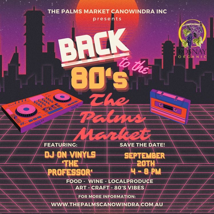 Palms Markets Are On This Friday: Its going to be great fun, 80’s theme with leg­endary local DJ, “The Professor”! There will be the usual fantastic line-up of food, wine, local produce, art and craft. Head to www.thepalmscanowindra.com.au for more information. See you there.