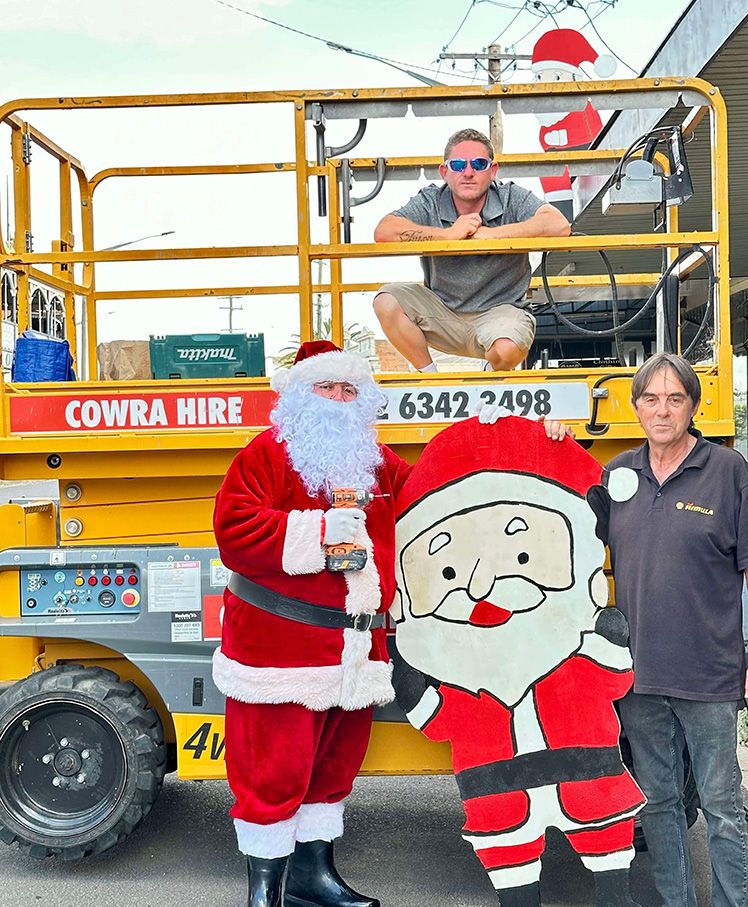 The big man in the red suit was on-hand last weekend to help the Canowindra Lions put up the Santa cut-outs.